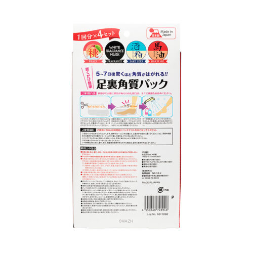 足裏角質パック 4Pセット(桃×1/ムスク×1/酒粕×1/馬油×1)