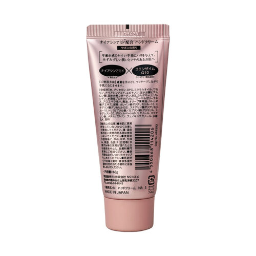 水、グリセリン、DPG、ミネラルオイル、ワセリン、ナイアシンアミド、ユビキノン、加水分解ヒアルロン酸、加水分解コラーゲン、BG、カルボマー、リゾレシチン、水溶性プロテオグリカン、ローヤルゼリーエキス、アロエベラ液汁、馬油、オリーブ果実油、ハトムギ種子エキス、尿素、オレイン酸ポリグリセリル-10、ステアリン酸グリセリル(SE)、ステアリン酸ポリグリセリル-10、トリ(カプリル酸/カプリン酸)グリセリル、ステアレス-20、ポリソルベート60、セタノール、ステアリン酸、メチルパラベン、フェノキシエタノール、水酸化K、香料