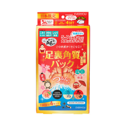 足裏角質パック 4Pセット(桃×1/ムスク×1/酒粕×1/馬油×1)